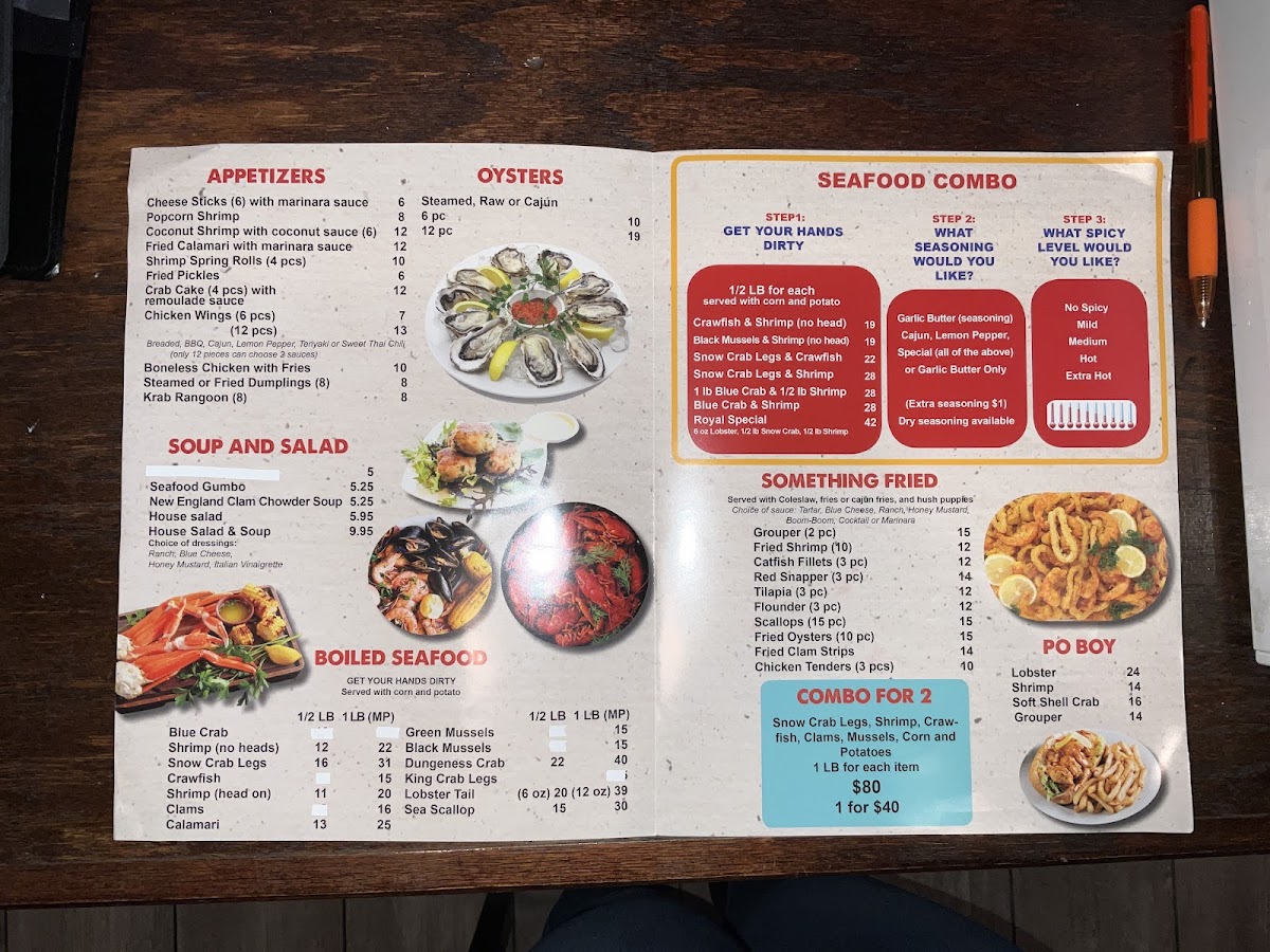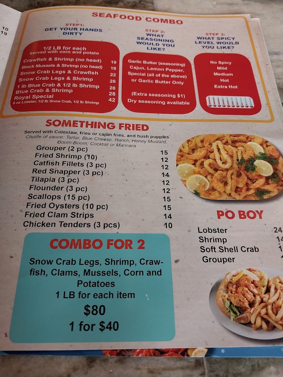 1lb snow crab, 1lb shrimp (no head), and 6 wings.